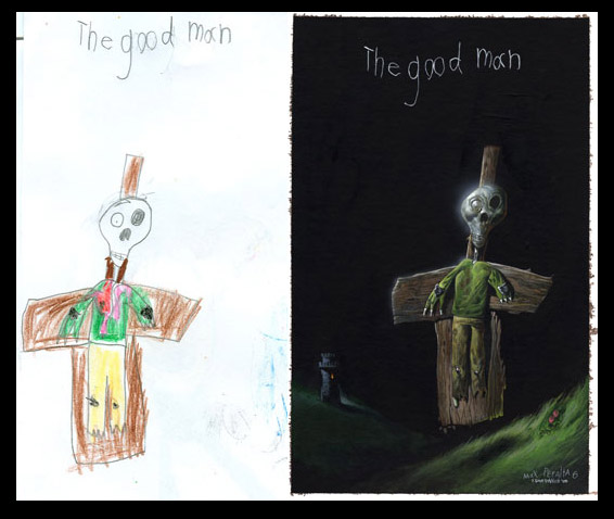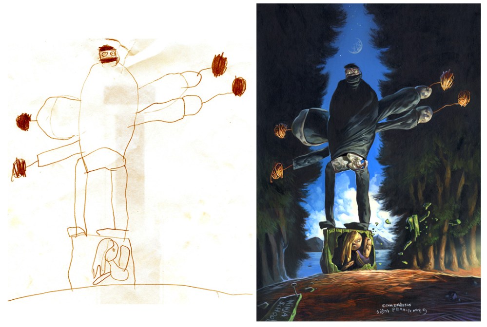 In all actuality, this is work of Dave Devries, creator of The Monster Engine. If you can’t figure out what he does by looking at the above images (because they’re too frightening), he takes the doodles of children and enhances them.