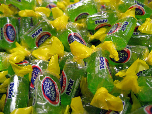 I like Jolly Ranchers otherwise.  This adverse reaction to one particular flavor probably deals with the fact we had an apple tree when I was a child, and I hated picking up the fallen, rotten, worm-invested symbols of the Fall of Man.  Mjusayin’.