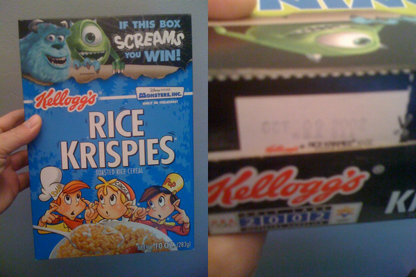 The Rice Krispies box made me laugh because of its screaming promotion for Monster’s, Inc. Jigglypuff elicited the same response (that’s the Pokémon on the Kraft’s Mac & Cheese).