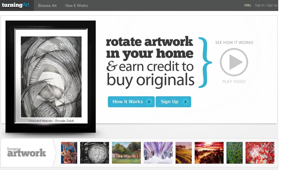 From my limited understanding (of not only the above site but the world), apparently you pick out artwork you want to hang up, and when you get sick of it, you send it back for another picture, à la Netflix.